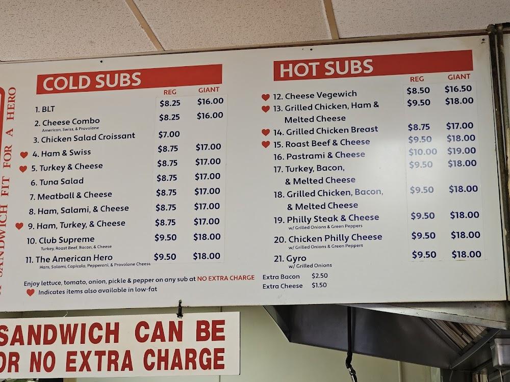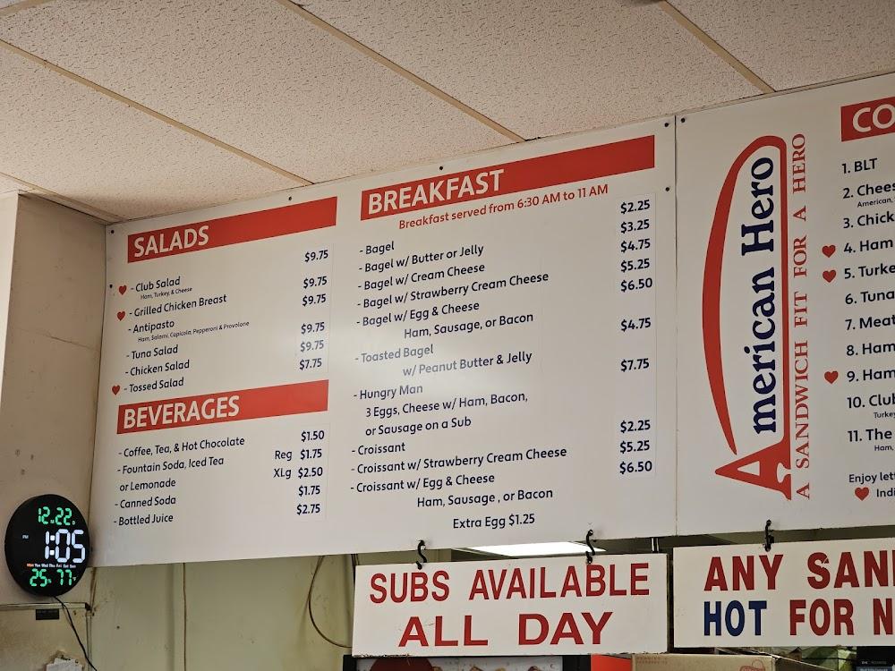 The menu focuses on simplicity, allowing fresh ingredients to shine. Portion sizes allow sharing, adding fun to meals with friends. Healthier options are available, ensuring everyone finds something to love. Desserts add a sweet finale to each meal with delicious cake and cheesecake slices that tempt the hardest of hearts. Enjoy a culinary journey at American Hero Subs & Bagels, a place that truly understands the local flavor.